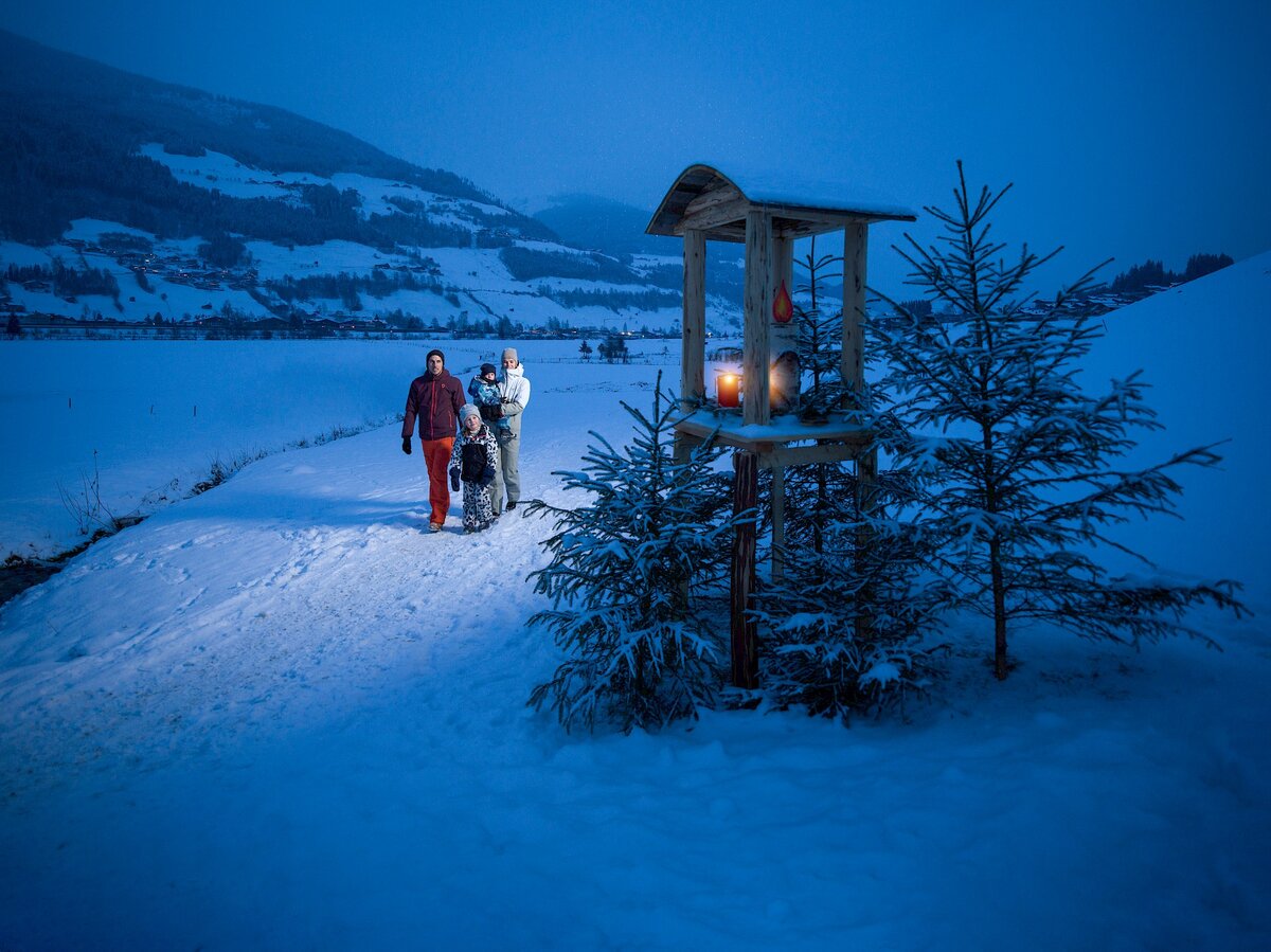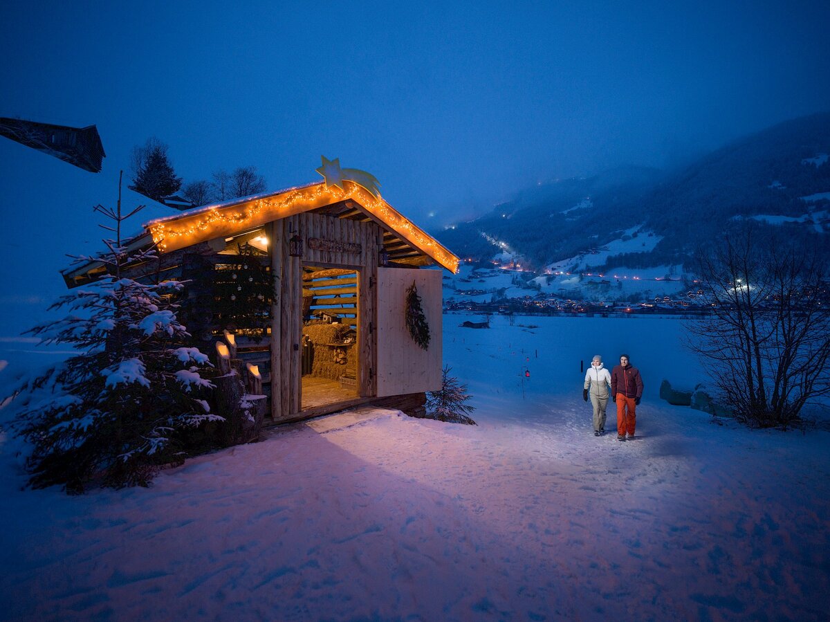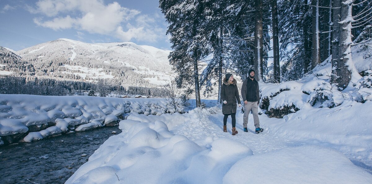 Aber auch bei Spaziergängen auf geräumten Winterwanderwegen, Pferdeschlittenfahrten, Fackelwanderungen, oder beim Langlaufen (Loipe unmittelbar beim Haus) und Schneeschuhwandern oder an den vereisten Krimmler Wasserfällen zeigt sich der Winter von seiner besten Seite.